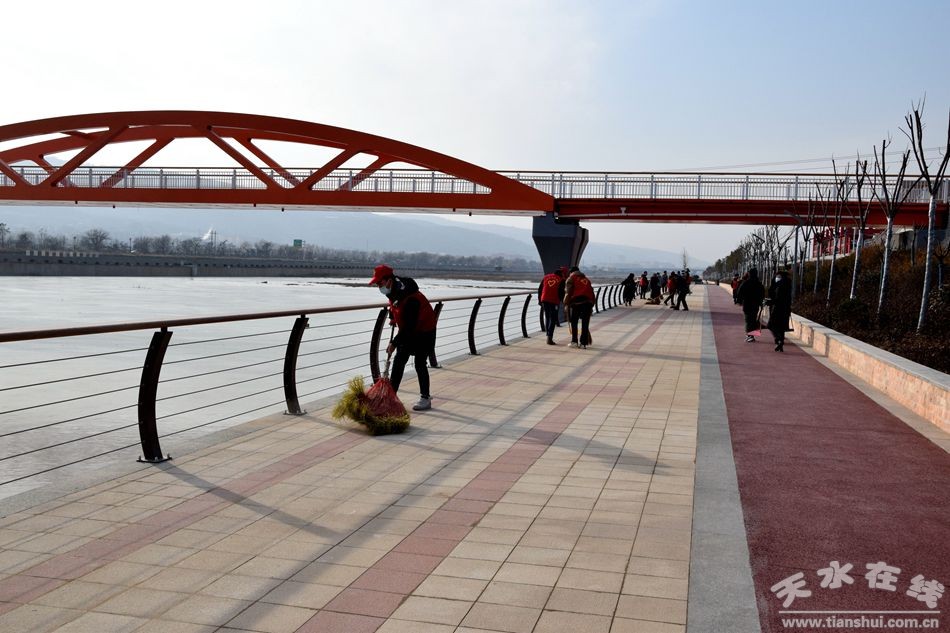 2020年12月31日,新年來臨之際,天水市城投公司黨委以“迎新年、促發(fā)展”為活動主題,展開環(huán)衛(wèi)清掃志愿服務(wù)活動。公司組織黨、團員30余人,配合保潔人員,對開放后的藉河二期風(fēng)情線3號濕地段進行環(huán)衛(wèi)清掃志愿者活動,公司在家黨委成員帶頭參加,黨團員積極響應(yīng)、踴躍參與。