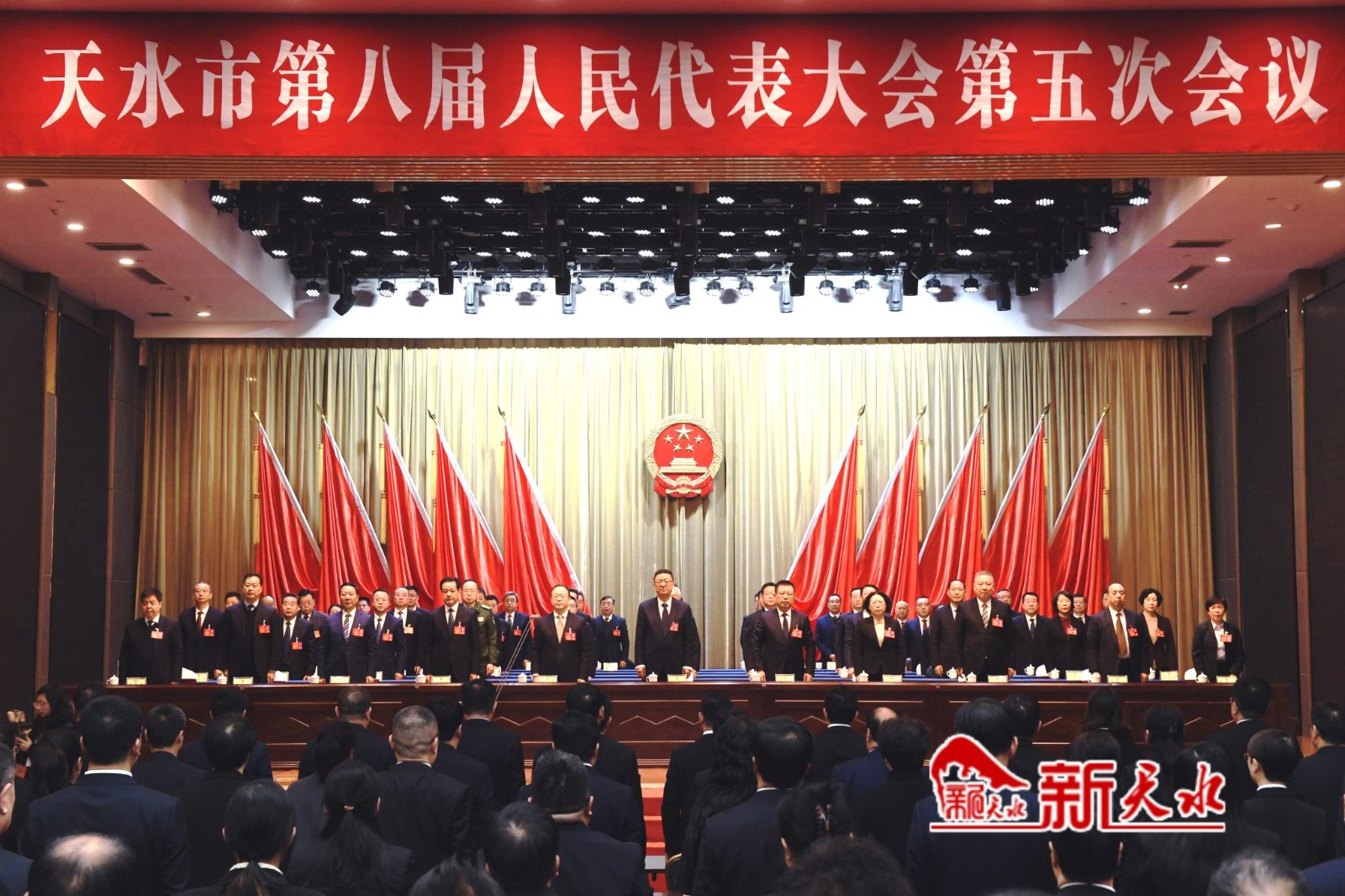 天水市第八屆人民代表大會第五次會議閉幕馮文戈劉力江出席 賈義翔主持 王燕出席12月27日上午,天水市第八屆人民代表大會第五次會議閉幕。第四次全體會議由大會主席團(tuán)常務(wù)主席、執(zhí)行主席賈義翔主持。出席會議的代表人數(shù)符合法定人數(shù)。本次全體會議由大會主席團(tuán)常務(wù)主席馮文戈、劉力江、賈義翔、王燕、楊曉鋒、胡志勇、申君明、何曉斌、何吉……